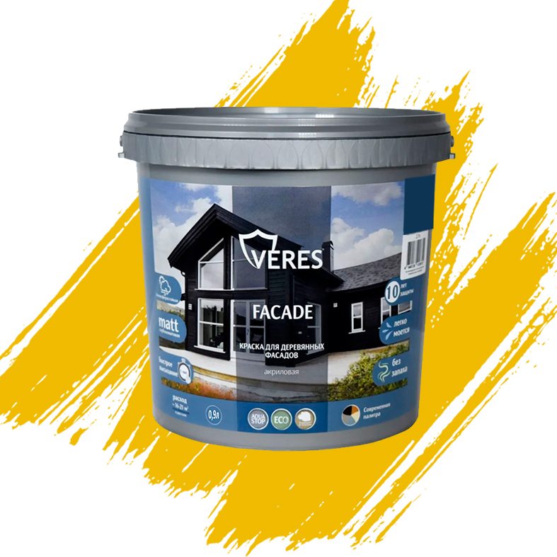 Краска "FACADE" для деревянных фасадов акриловая "Медовый" 0,9л (8) "Veres"