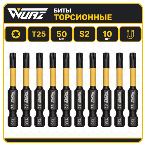 Бита T10 x 50мм S2 10шт. торсионная намагниченная 2964