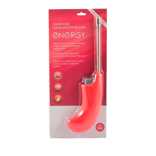 Пьезозажигалка Energy JZDD-23-С, красная - универсальная зажигалка, предназначенная для безопасного воспламенения газа.