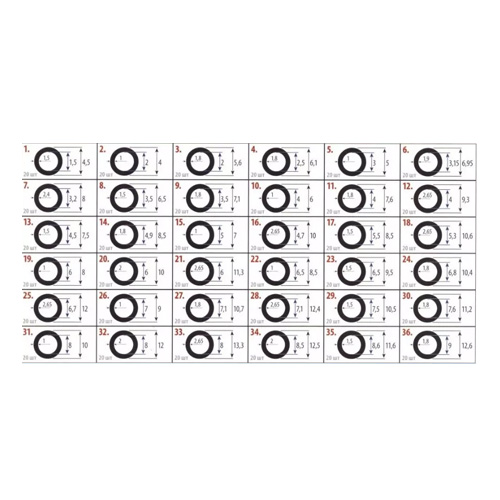 Набор Сантехник №40 это набор из 720 резиновых колец 36 размеров 1,5-9 мм.