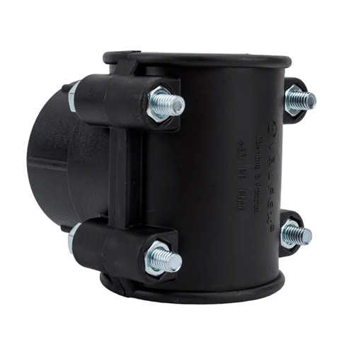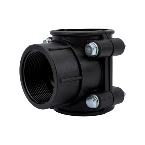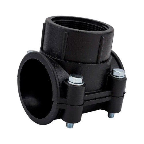 Болтовая седелка ПНД 63-2" предназначена для отвода второстепенной трубы от основной магистрали в полиэтиленовом водопроводе.