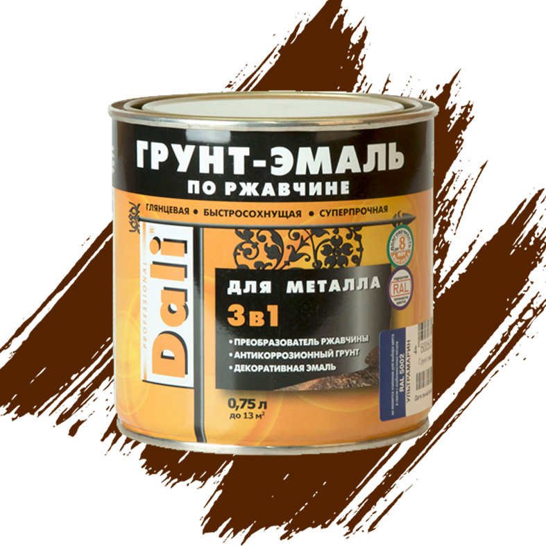 ГРУНТ-ЭМАЛЬ ПО РЖАВЧИНЕ "DALI" 3 в 1 гладкая коричневая 0,75 Л (6) Рогнеда