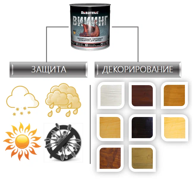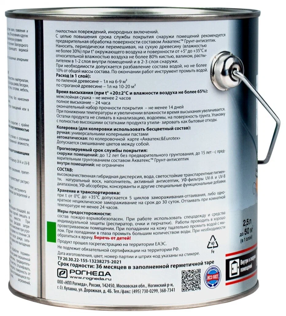 Применяется внутри и снаружи помещений по деревянным поверхностям и материалам на основе древесины (ДВП, ДСП, фанера и др.): фасады домов, беседки, садовые строения, малые архитектурные формы, стены, потолки, мебель, предметы декора и интерьера и пр. Область применения: - Максимально эффективная защита древесины от воздействия влаги, появления и распространения биопоражений (гниения, плесени, грибка, синевы), УФ-излучения и других атмосферных воздействий, в том числе в тяжелых климатических условиях; - Декоративная обработка древесины с целью получения благородного лессирующего (полупрозрачного) покрытия, сохраняющего видимой рисунок дерева: - Обновление деревянных поверхностей, ранее окрашенных алкидными или акриловыми составами. Не рекомендуется использовать для окраски полов и лестниц без нанесения финишного покрытия, обеспечивающего стойкость к истиранию и для окрашивания соприкасающихся поверхностей.""Гибридный лессирующий антисептик для дерева. Преимущества: - Покрытие с высокими показателями атмосферостойкости и повышенной сопротивляемости к негативным факторам окружающей среды; - Устойчив к сезонным перепадам температур от -40 до +60 ⁰С, повышенной и переменной влажности, интенсивной солнечной активности; - Благодаря наличию натурального воска, обладает грязе-водоотталкивающими свойствами; - Обеспечивает оптимальную защиту от выгорания: содержит УФ-фильтр UV-A и UV-B диапазонов, УФ-абсорберы и транспарентные пигменты; - Содержит активные антисептические компоненты последнего поколения, препятствующие появлению и распространению биопоражений; - Обладает повышенной эластичностью, не растрескивается и препятствует растрескиванию древесины; - Имеет отличные малярные свойства, не течет и не капает с инструмента; - Экологичен, без неприятного запаха, не содержит органических растворителей и опасных компонентов; - Прогнозируемый срок службы снаружи помещений - до 12 лет без предварительного грунтования, до 15 лет с предварительным грунтованием составом Акватекс Грунт-антисептик. Прогнозируемый срок службы внутри помещений - не ограничен; - Для очистки инструмента используется вода.