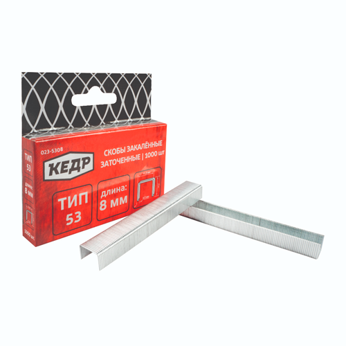 Скобы имеют закаленную структуру, благодаря чему обеспечивают надежное крепление и фиксацию. Острые концы с легкостью входят в материал.
