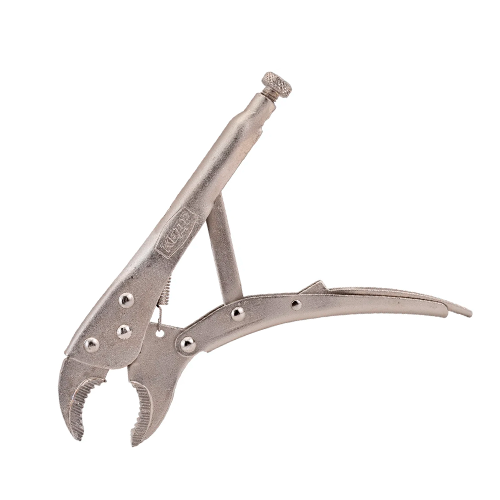 Зажим ручной Кедр, полукруглый захват, 250 мм. Материал: инструментальная сталь.Максимальный захват: 65 мм.Длина: 250 мм.Прочные полированные зажимные клещи для удержания различных деталей для их дальнейшей обработки, используются при склеивании, пайке и сварке. Насечки на губках обеспечивают надежное удержание деталей. Ширина зажима меняется регулировочным винтом в торце инструмента. Используется в слесарно-монтажных и сварочных работах.