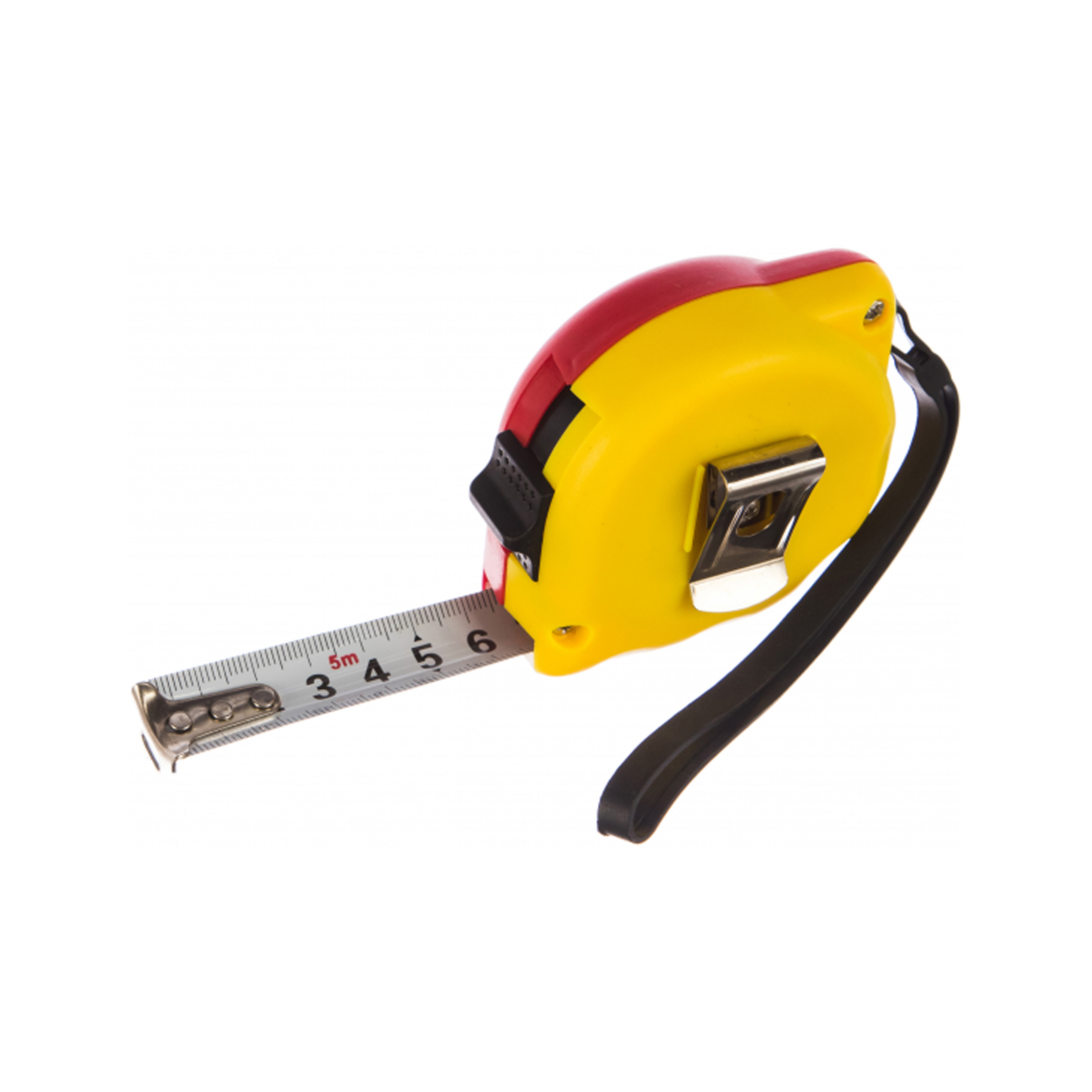 Рулетка имеет пластиковый корпус и полотно из упругой стали. Есть ремешок для руки и клавиша фиксации полотна.