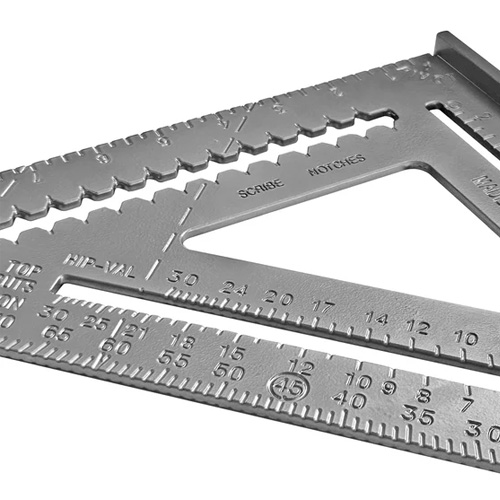 Угольник выполнен из алюминия, фрезерованная разметка никогда не сотрется и позволяет использовать угольник, как рейсмус и для направления электроинструмента.