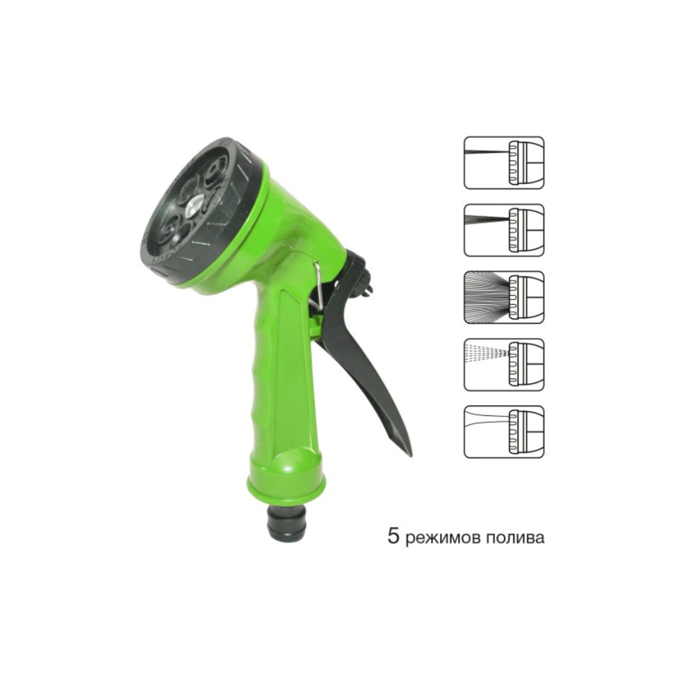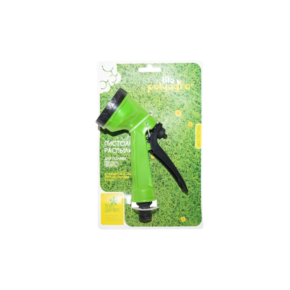 Пистолет-распылитель для полива POLYAGRO EKO, 5 режимов полива 7571104 со штуцерной посадкой и удобным курком предназначен для полива на дачных участках, в садах.