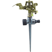 Дальность до 15 м. Площадь до 180 м². Вращающийся, со штуцерной посадкой ¾, 3 регулируемые лопасти, 18 отверстий, 27 возможных комбинаций распыления водного узора. Устойчивая база-основание. Прочный АБС-пластик.