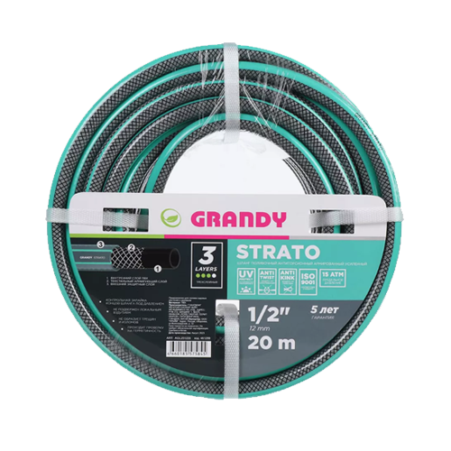 Длина в 20 метров и диаметр 1/2 дюйма обеспечивает достаточно пространства для полива огорода, теплицы или газона без необходимости частых перемещений. Отличается стойкостью к воздействию ультрафиолета и долговечностью при регулярном использовании. Этот садвый шланг для полива от бренда Гранди серии Страто подойдет как для домашних условий, так и для дачи, а также отлично справится с задачами полива клумб на участке.