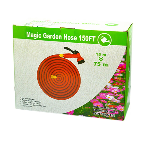 Бренд Magic Garden МЭДЖИК ГАРДЕН представляет вам самого незаменимого и полезного помощника в вашем саду, на даче, во дворе и огороде (огородный). Ищете самый удобный в использовании шланг для своего сада и огорода? Мы представляем вам поливочный шланг, который станет настоящим находкой для всех садоводов! Его главной особенностью является возможность растягиваться больше заявленной длины, что делает его невероятно практичным и универсальным. При высоком давлении от 8 бар он увеличивается до максимального размера, обеспечивая мощный поток воды для полива. При этом, чем меньше давление, тем меньше растяжение длины, что всегда удобно контролировать. Изготовлен из качественной защитной оплетки из ПВХ ткани снаружи, повышая устойчивость к перетиранию и увеличению выносливости к ультрафиолетовым лучам, а внутри под оплёткой трёхслойный натуральный латекс, который гарантирует долговечность использования. На концах шланга имеются латунные фитинги высокого качества, что обеспечивает надежность и легкость в подключении. Идет в комплекте с пистолетом распылителем, который имеет 7 режимов работы: и брызгалка, и туман, и морось, и режим стандартной лейки. Сам пистолет-распылитель выполнен из качественного абс пластика, имеет противоскользящую поверхность, не сломается под напором. Резиновые прокладки обеспечат надежность соединений. Кроме того, в комплект входит удобный мешок для хранения, который облегчит его транспортировку. Шланг имеет диаметр 20 мм и резьбу 3/4 дюйма, что позволяет использовать его с различными садовыми устройствами. Надежная конструкция и качественные материалы нашего растягивающего шланга - это гарантия долгого и эффективного использования как для домашних дачных участков, так и для профессионального использования в ландшафтном дизайне. Не упустите возможность сделать свой сад более ухоженным и красивым!