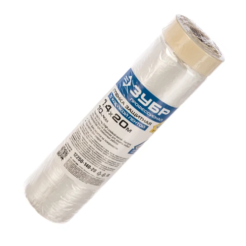 Защитная пленка с клейкой лентой Зубр ПРОФЕССИОНАЛ HDPE, 10мкм, 1,4х20м 12250-140-20 представляет собой приспособление для защиты поверхности от грязи, пыли, влаги и краски. Используется при строительстве и ремонте. Клейкая лента не оставляет следов при снятии пленки. Размер - 1.4х20 м.