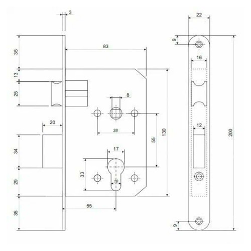 По посадочным размерам замки 16 серии подходят для замены замков ДААЗ, Зенит ЗВ4-3.1 (04,06) и замков Меттем с межосевым расстоянием 55 мм.