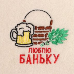 Банная варежка Добропаровъ с вышивкой Люблю баньку, первый сорт надежно защищает руки от пара и горячих предметов.