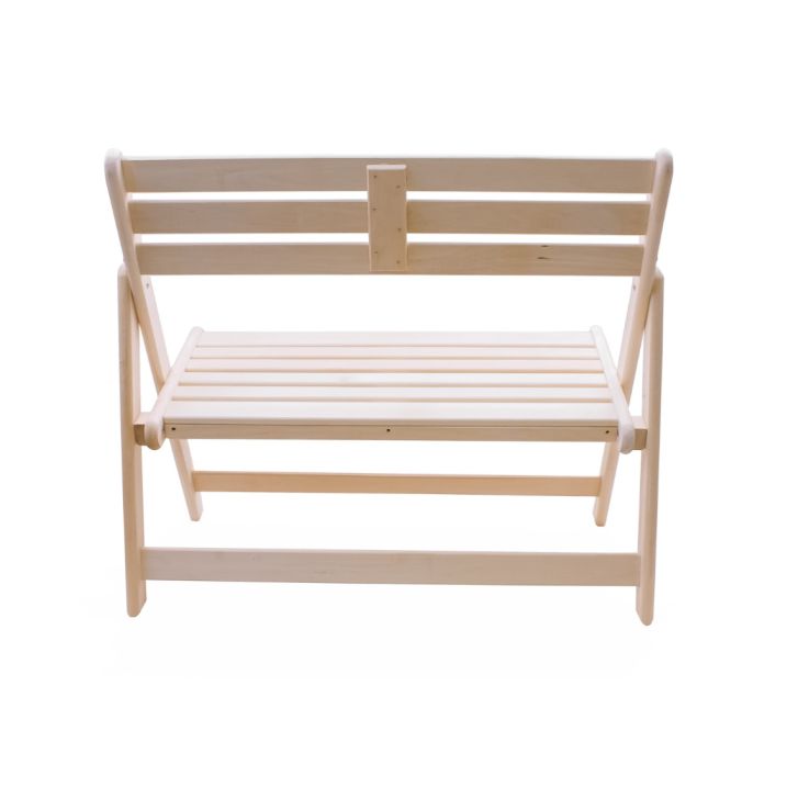 Модель оборудована складным механизмом, который превращает скамью в компактный прямоугольник с размерами 1050 х 200 мм. Это позволит без проблем хранить скамейку в кладовке или в неприметном закутке. Весит скамья 12 кг, в сложенном виде ее легко одному перенести в предполагаемое место отдыха. Высота сиденья — 450-500 мм.