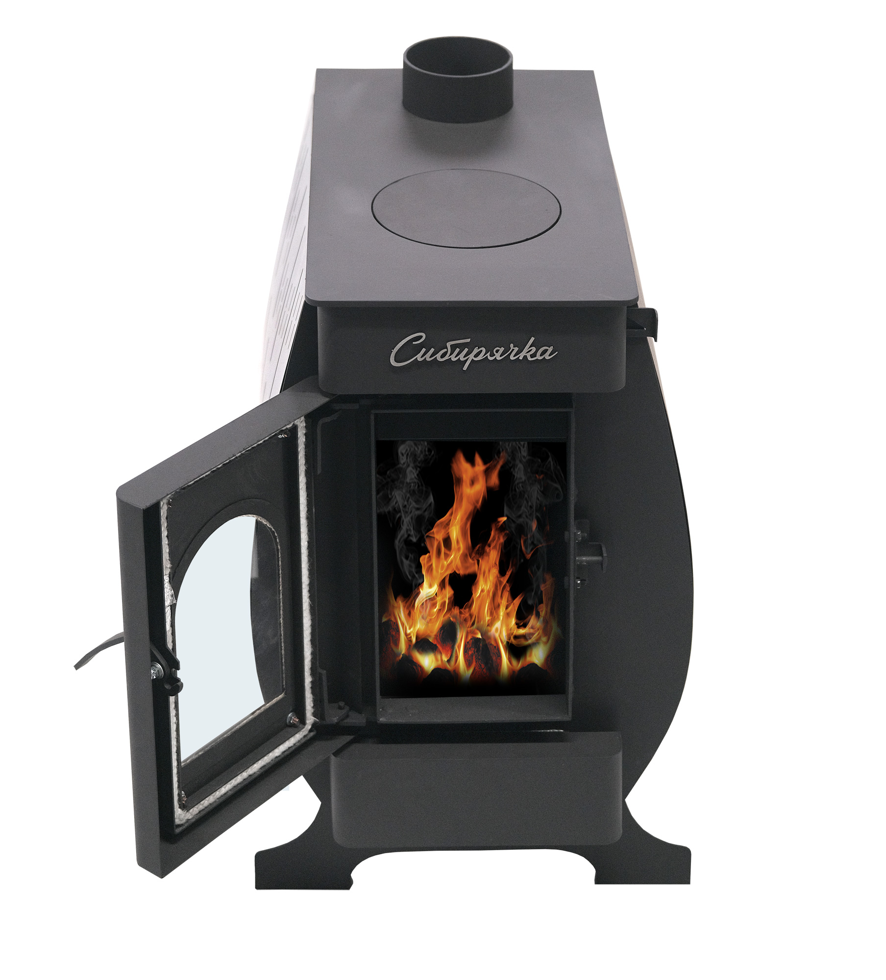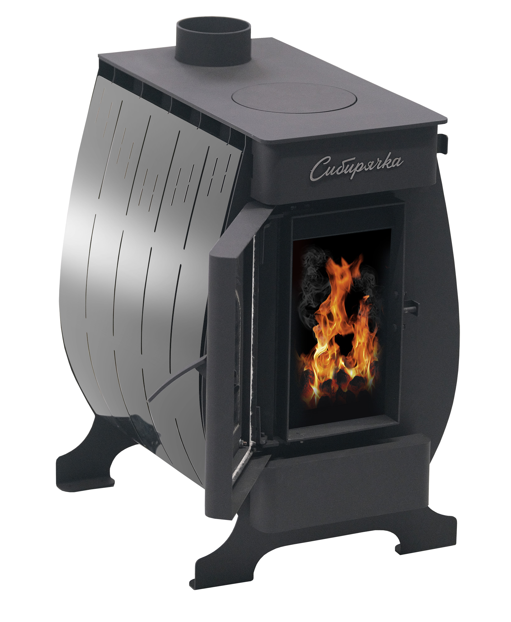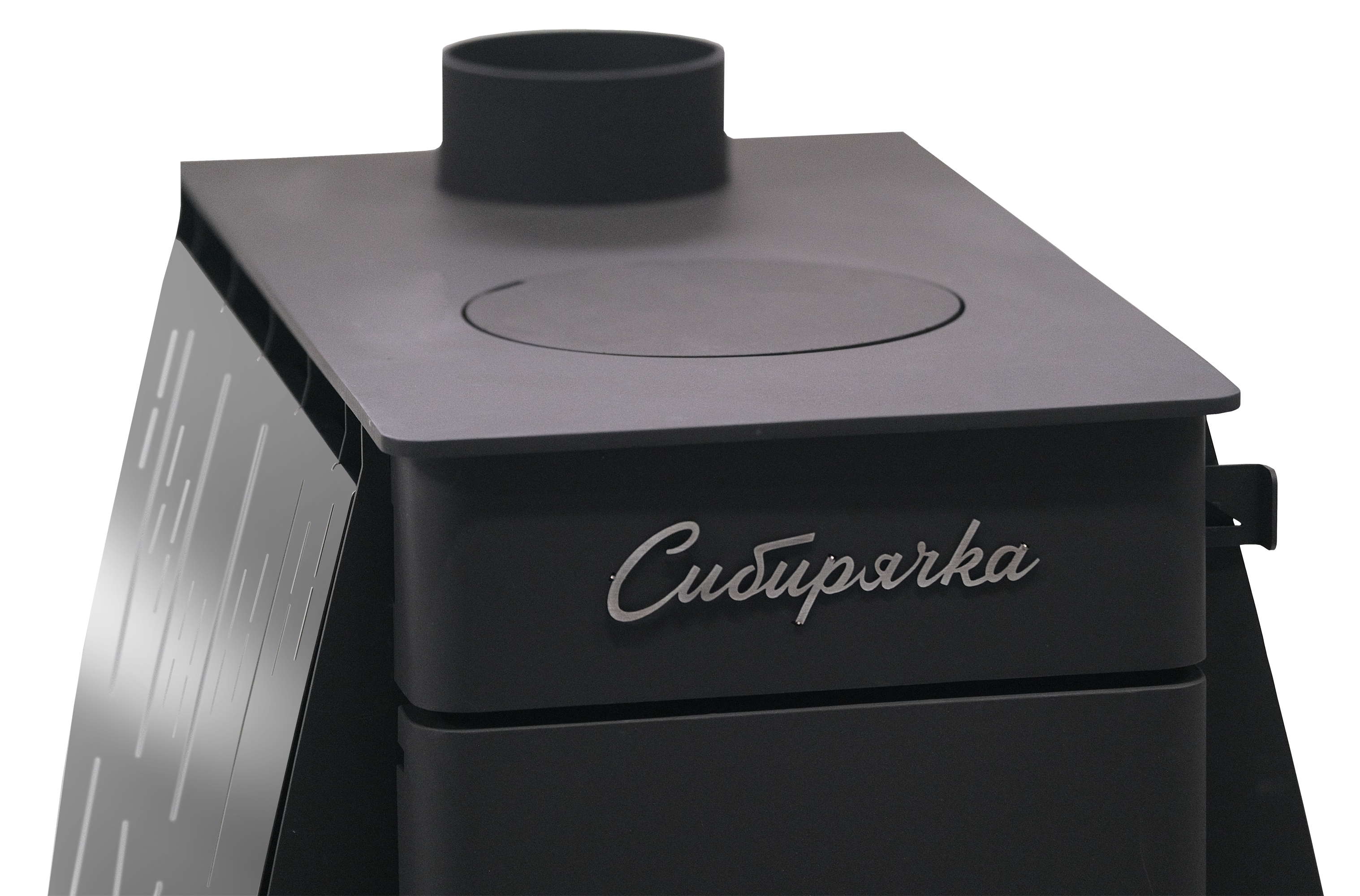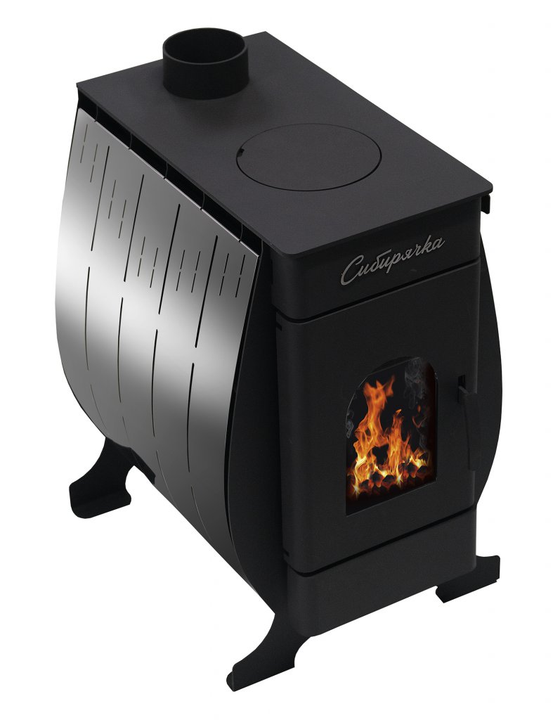Воздухогрейная печь «Сибирячка» представляет собой отопительный прибор, предназначенный для обогрева помещений различного назначения объемом от 100 м3 до 200 м3. Отличительной особенностью данной печи является наличие в ее конструкции варочной плиты, предназначенной для приготовления пищи и нагрева воды. Стенки печи изготовлены из стали марки Ст.3 СП 5 толщиной 3 мм, а варочная плита – 6 мм, которая с обратной стороны имеет кольцо, необходимое для удержания металлического кружка. Неповторимая эстетика печи «Сибирячка» достигается за счет создания стильного дизайна, позволяющего дополнить любой загородный интерьер качественным отопительным прибором по более чем доступной цене. Основным источником топлива в данной печи являются дрова и прессованные древесные брикеты, позволяющие получать максимальное тепло при использовании данной печи для отопления. Данная модификация оснащена кожухом из нержавеющей стали марки AISI 430, толщина которого составляет 0,8 мм.