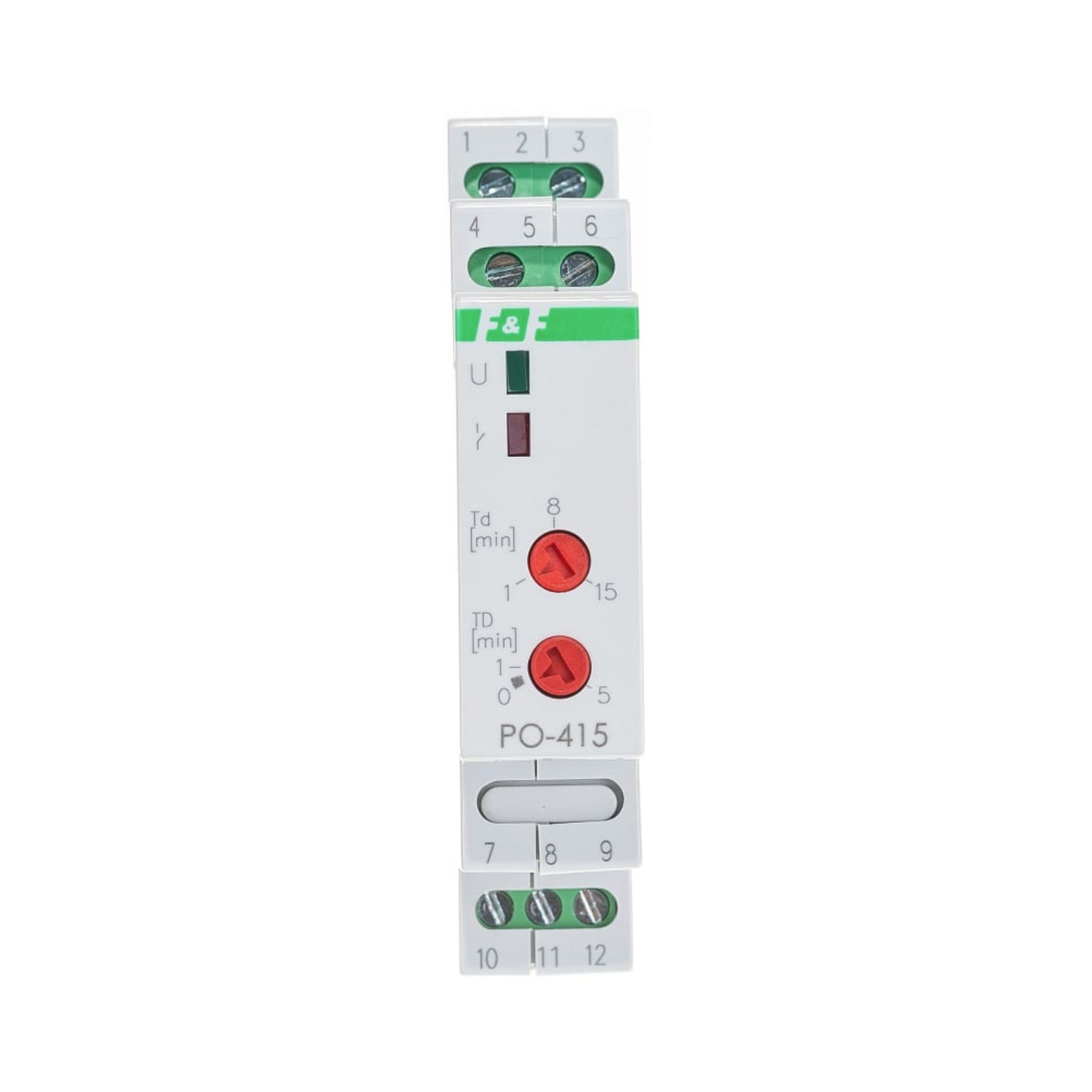 Реле времени PO-415 предназначено для поддержания работы устройства после размыкания управляющего контакта в течение установленного отрезка времени.
