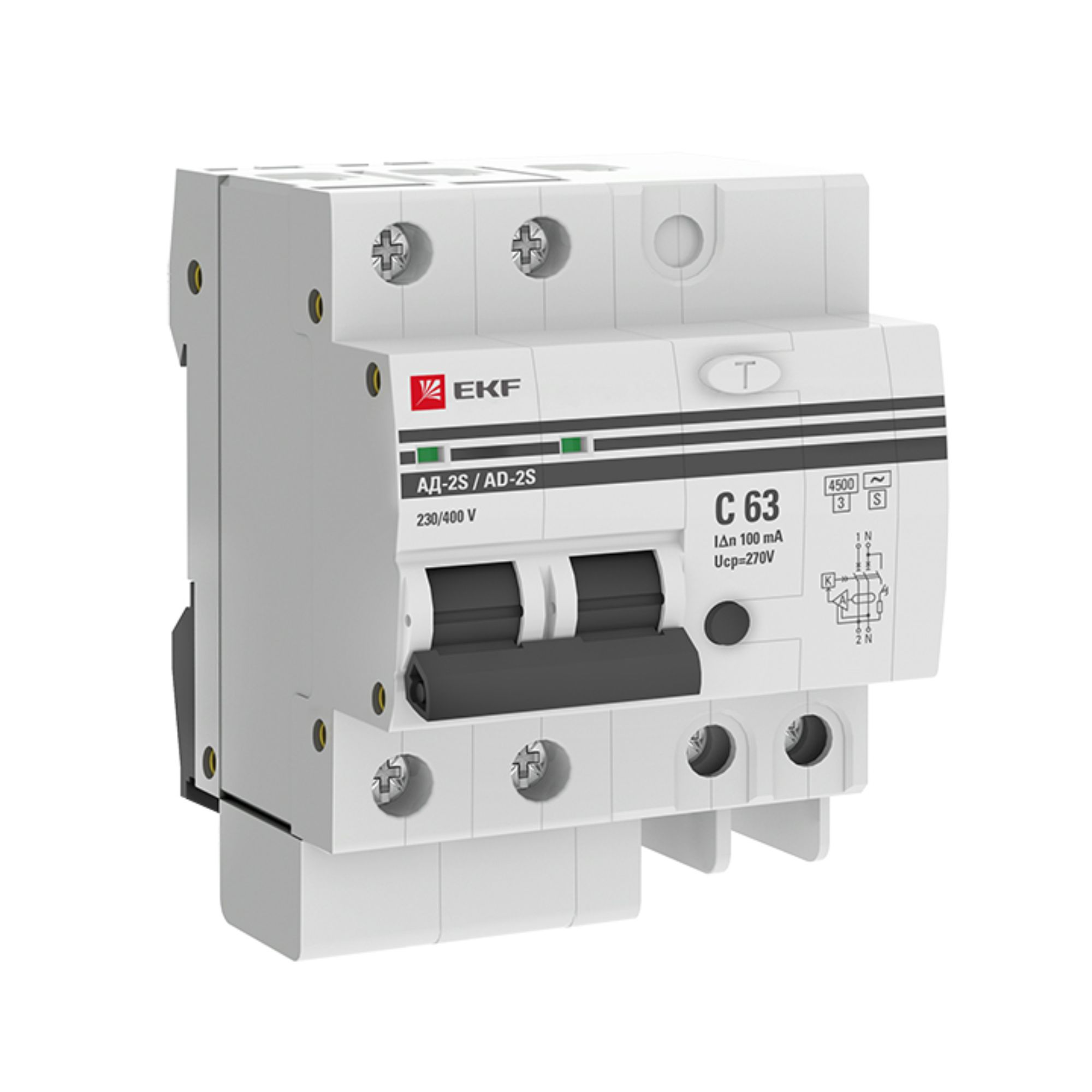 Дифференциальный автоматический выключатель АД-2(4) (S) EKF PROxima представляет собой аппарат, сочетающий функции автоматического выключателя с устройством защитного отключения. При обнаружении автоматическим выключателем в защищаемом участке сети тока утечки (повреждения) на землю или сверхтока (тока перегрузки или короткого замыкания) происходит срабатывание устройства, приводящее к отключению защищаемой сети. Особое отличие дифференциальных автоматов EKF – в наличии встроенного блока защиты от перенапряжения. АД-2 и АД-4 EKF PROxima выпускаются в стандартном и селективном (АД-2S, АД-4S) исполнениях.