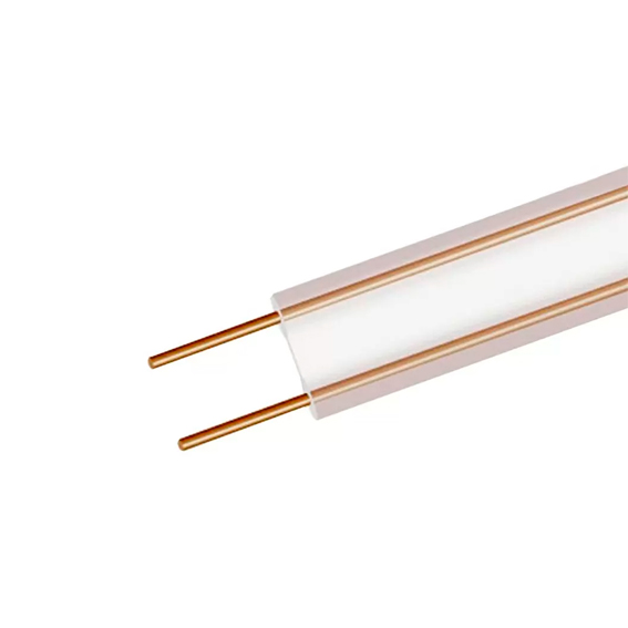 Представляет собой 2 медные однопроволочные жилы сечением 0,4 кв.мм, уложенные параллельно в одной плоскости и изолированные полиэтиленом, черного цвета.