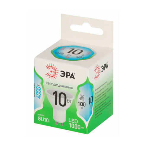 Светодиодная лампа ЭРА Green Line MR16-10W-840-GU10 GL софит, 4000К 10Вт 220-240В 1000Лм, Б0066993 лампочка led.