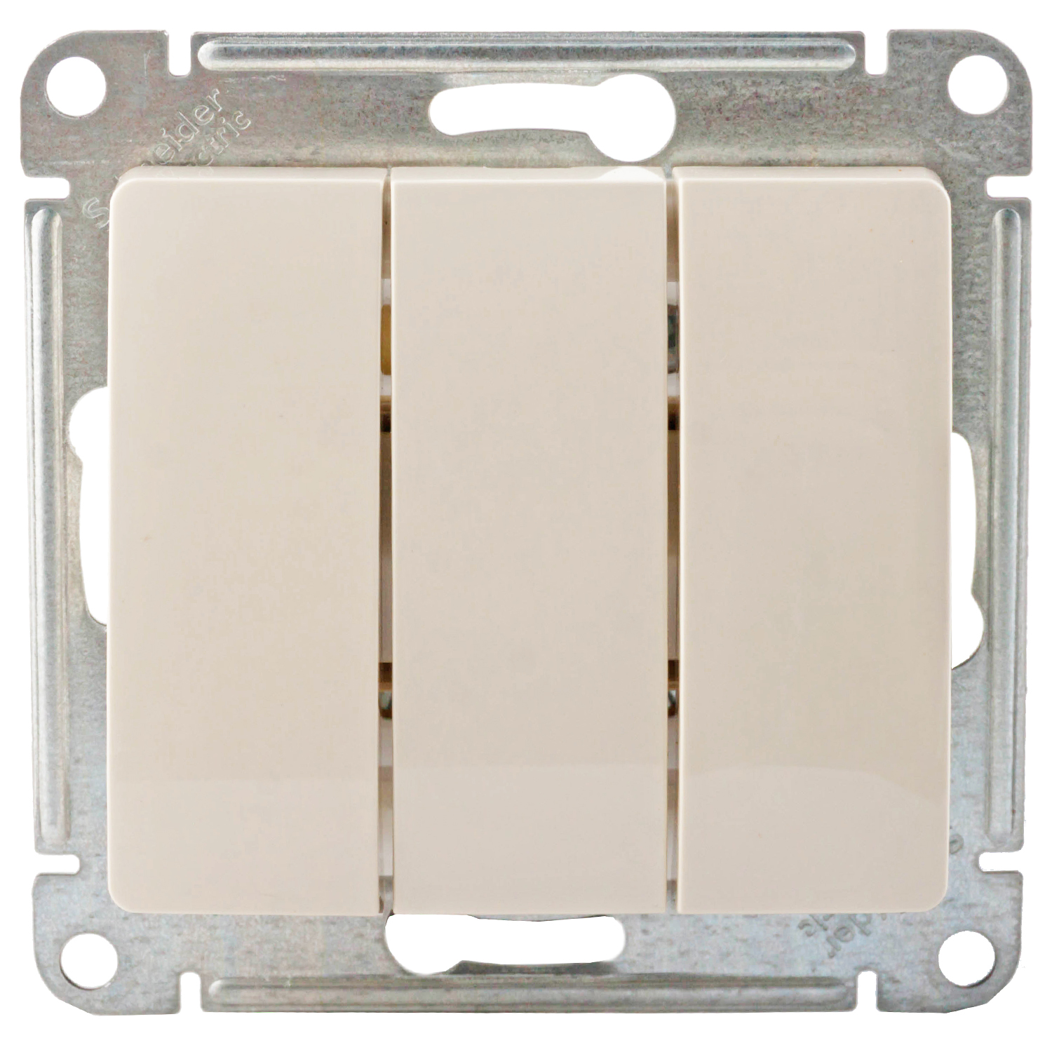 Механизм Schneider Electric Glossa (цвет бежевый) выключателя 3-клавишного подходит для сетей 250 В, на ток 10 А.