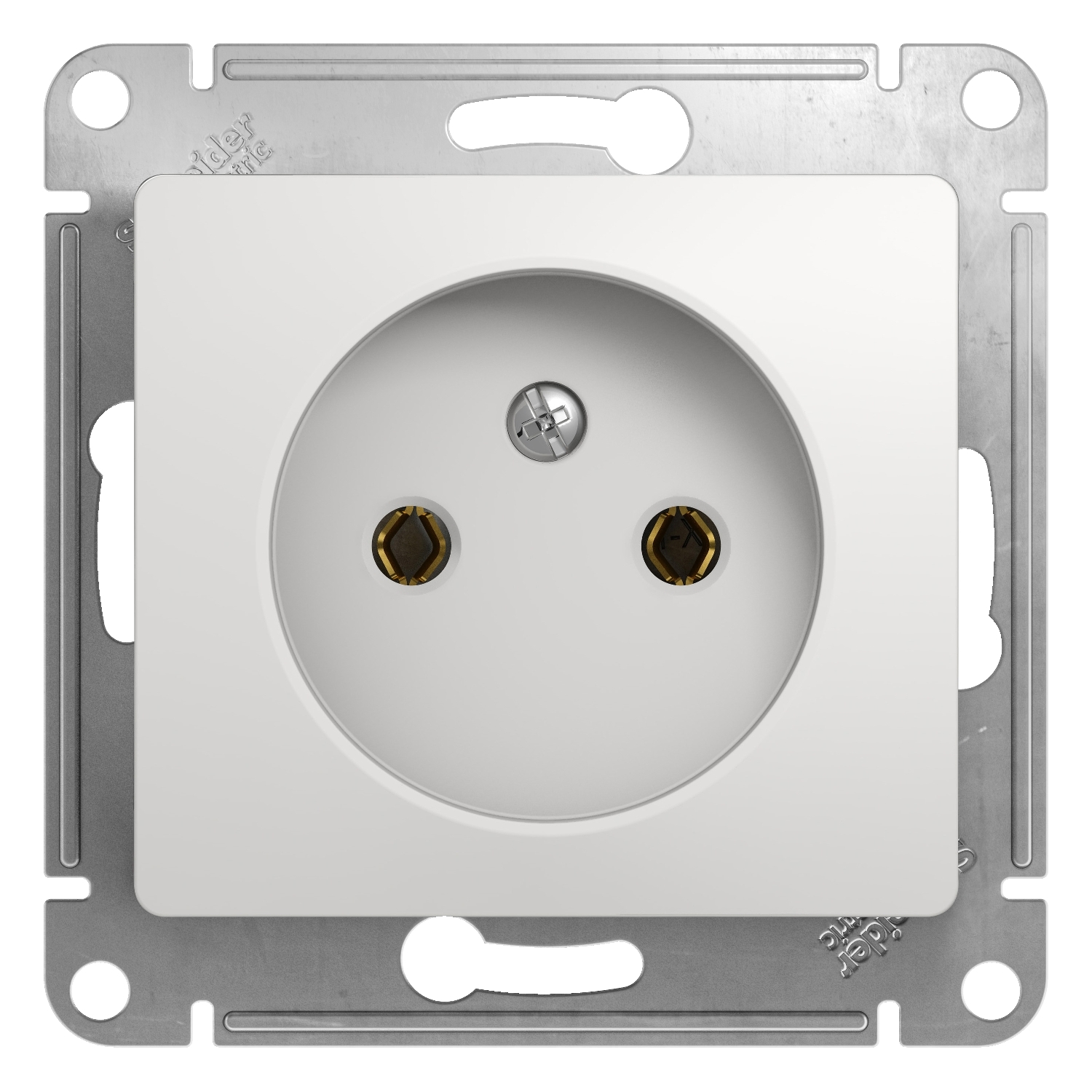 Механизм Schneider Electric Glossa (цвет белый) розетки одинарной без заземления и без шторок подходит для сетей 250 В, на ток 16 А.