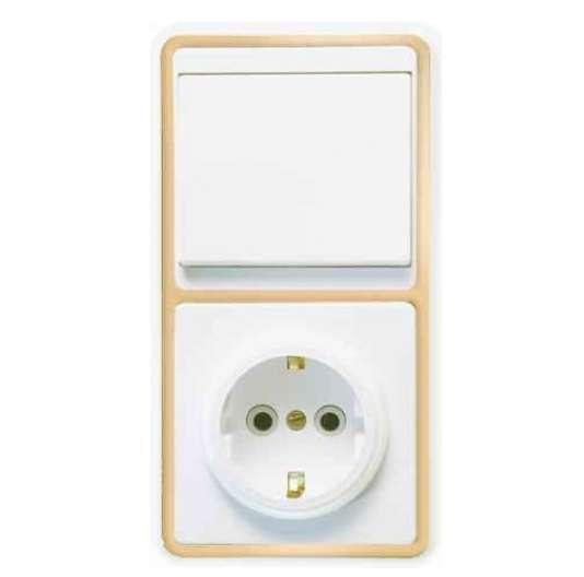 Блок 1кл выкл. подс.+роз. с заземл.зол. Бэлла БКВР-056 (Кунцево 5822)