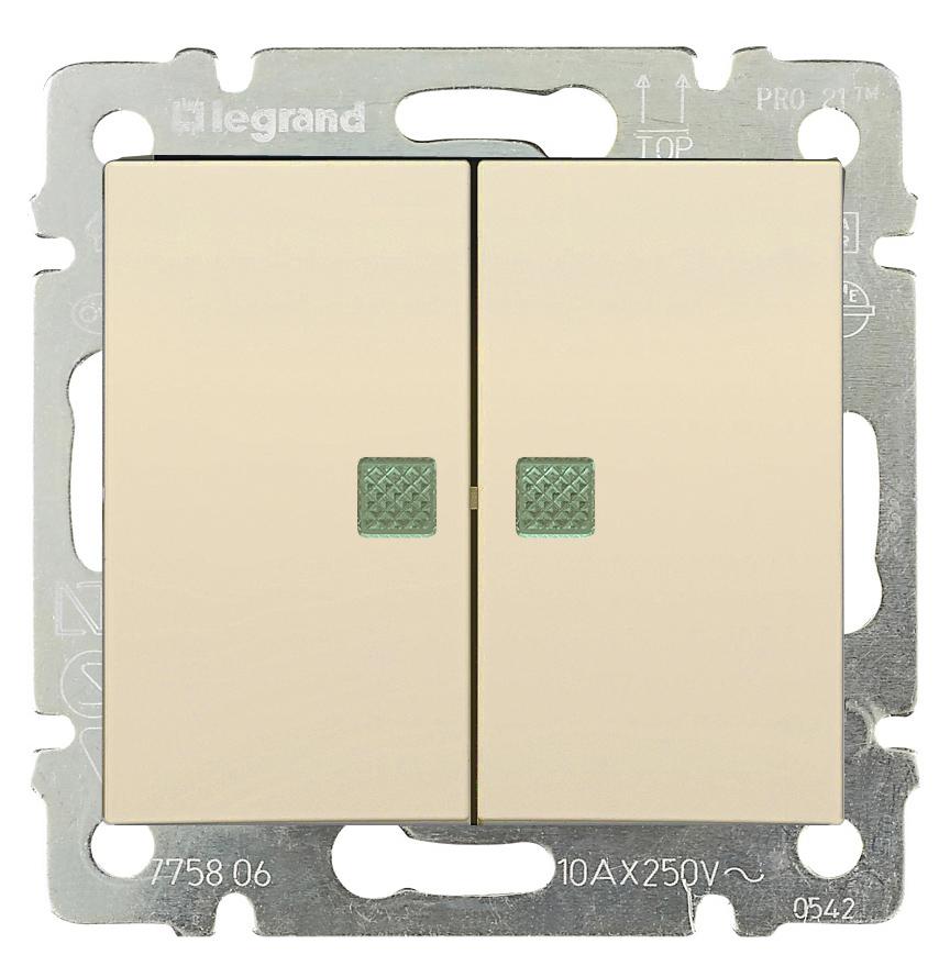 Представляет собой механизм выключателя с двумя клавишами. Цвета слоновой кости.