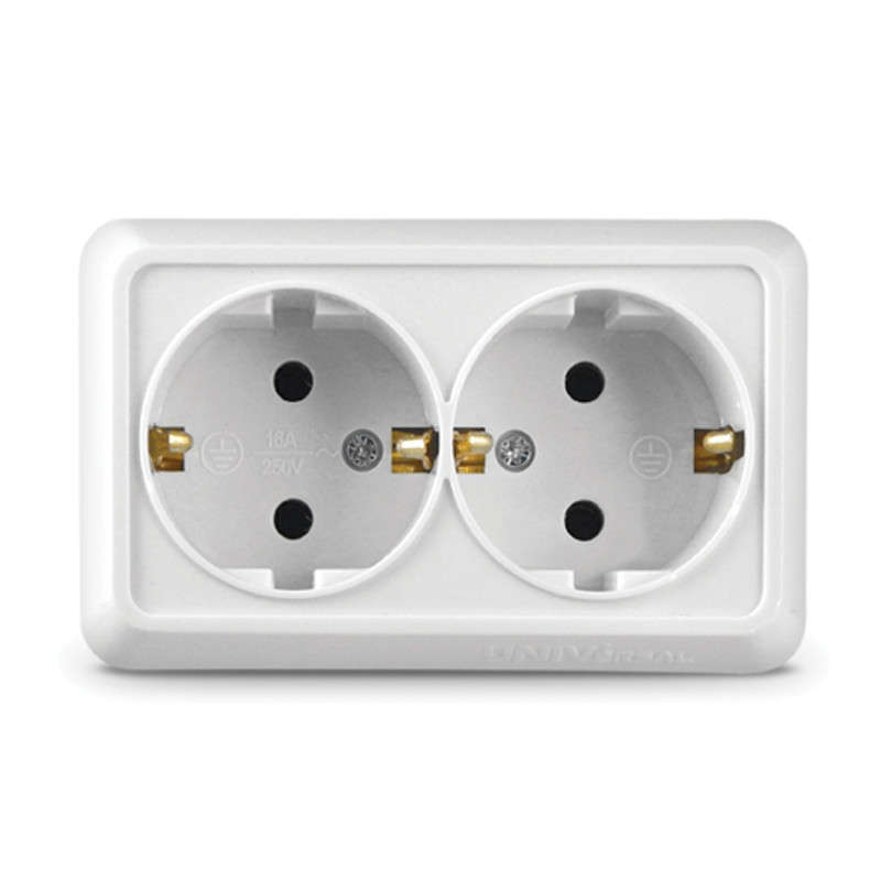 Розетка 2-м ОП Олимп 16А с заземл. бел. UNIVersal О0128 представлена потребителю в серии "Олимп".