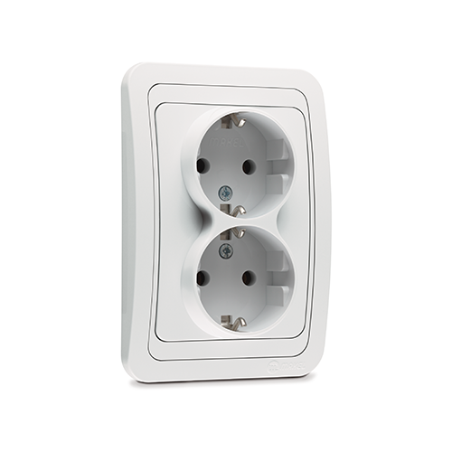 Квадратной формы, со стороной, равной 81 мм, белого цвета. Механизм выполнен из негорючего материала, на керамическом или пластиковом основании из полиамида, который не поддерживает горение до 850°С. IP20. Предназначен для внутренней установки, монтируется на глубину 43,8 мм, на одном уровне с поверхностью стены.