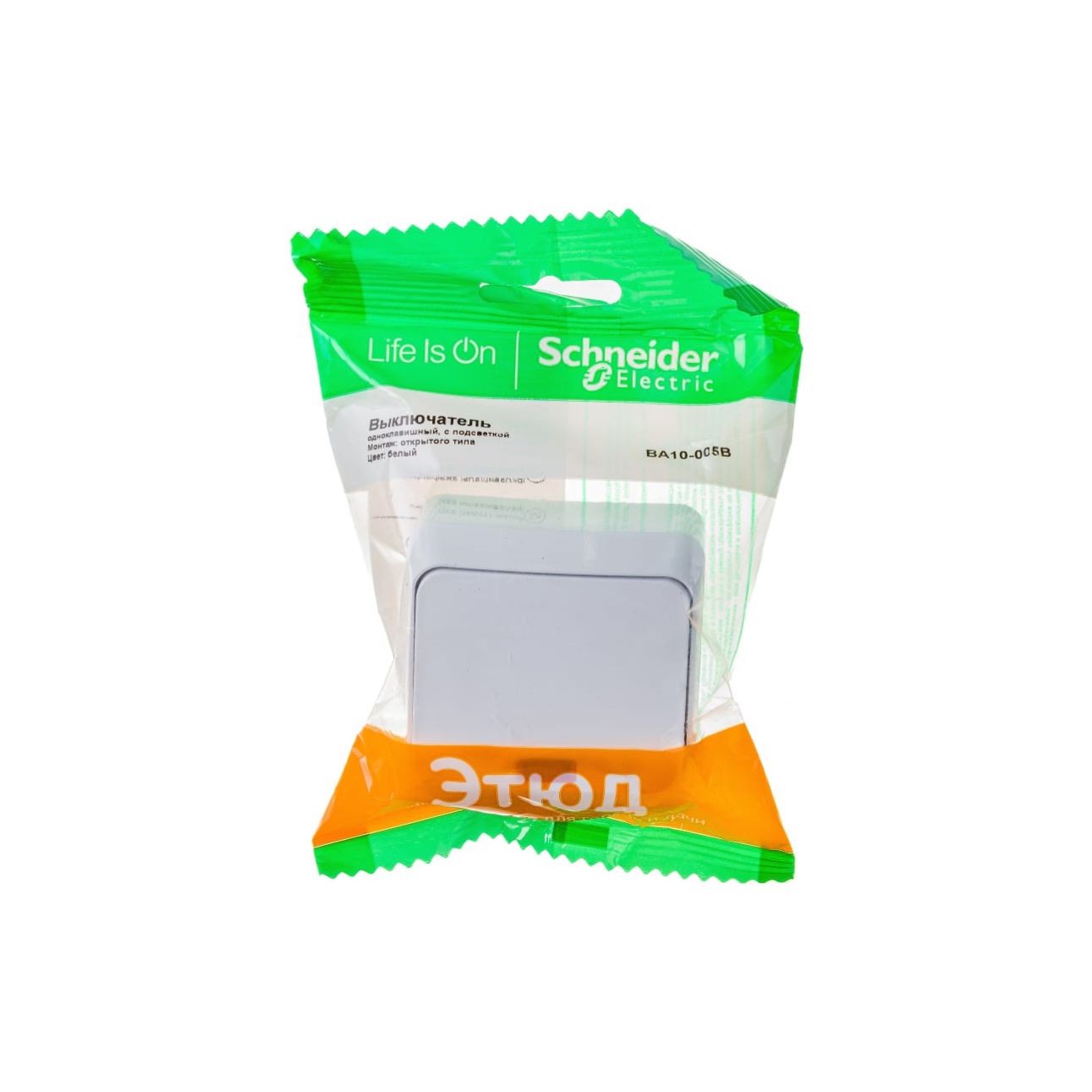 Выключатель Schneider Electric ЭТЮД (белый, открытой установки) одноклавишный предназначен для применения в сетях до 250В, на ток до 10А. Наличие подсветки делает его легко находимым при отсутствии освещения. Выключатель подходит для большинства типов ламп, включая люминесцентные. Сделано в России.