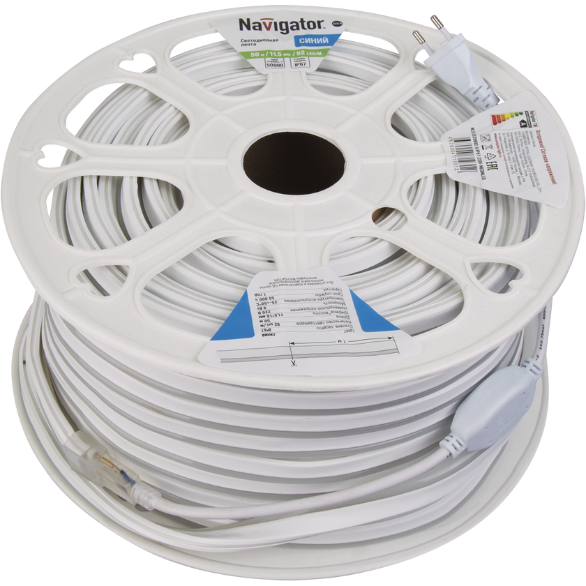 Лента светодиод. Navigator 71 931 Синий в белом силиконе 220V