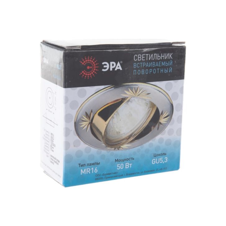 Поворотный встраиваемый светильник KL3A SS/G станет превосходным решением для любого помещения: его можно разместить в спальне, в детской или на кухне. Светильник можно использовать как в качестве базового освещения, так и для создания акцентов в определенных зонах комнаты. Благодаря скрытой части корпуса светильники можно встраивать в потолок или стены, создавая разный дизайн помещений. Поворотный механизм подарит Вам уникальную возможность направлять свет в разные точки: например, на кухне осветить рабочую зону, а в кабинете место для чтения. Встраиваемый светильник ЭРА с приятным дизайном подойдет для помещений с разным интерьером: от лофта до модерна, классицизма или минимализма. Максимальная мощность лампы – 50 Вт. Корпус встраиваемого светильника изготовлен из цинкового сплава. Диаметр отверстия, требуемого для установки светильника составляет 75 мм, а диаметр самого светильника – 80 мм. Цоколь под лампу GU5.3 в комплекте. Купив встраиваемый светильник бренда ЭРА, вы останетесь довольны и сможете создать уют в доме! Внимание: лампа не входит в комплектацию.