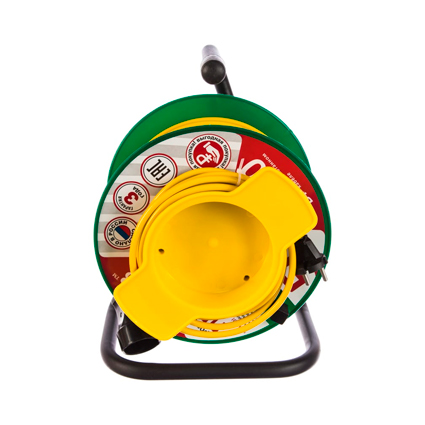 Удлинитель на катушке ТМ Союз 1 розетка 50м 481S-2205 предназначен для работы с электрическими приборами, находящимися на удалении от стационарной розетки. Изделие состоит из провода ПВС 2х1 длиной 50 метров, который размещен на пластиковой катушке. Удлинитель оснащен ручкой для сматывания провода после работы и рукояткой для удержания удлинителя и его транспортировки. Катушка расположена на стальной стойке.