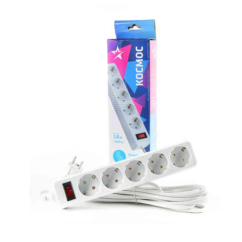 Удл.с сет.фильтром 5х1.8м с с/з ПВС3х0,75 Космос