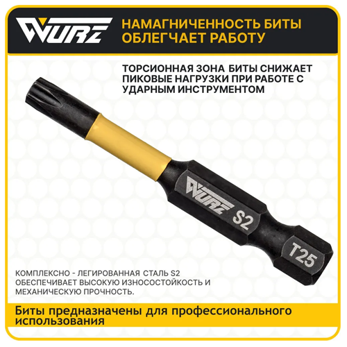 Бита T10 x 50мм S2 10шт. торсионная намагниченная 2964