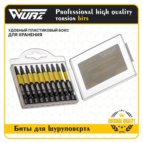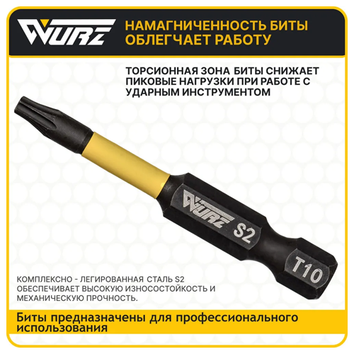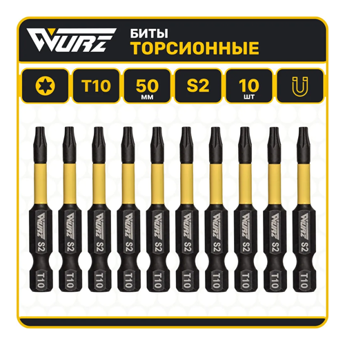 Бита T10 x 50мм S2 10шт. торсионная намагниченная WURZ 2964