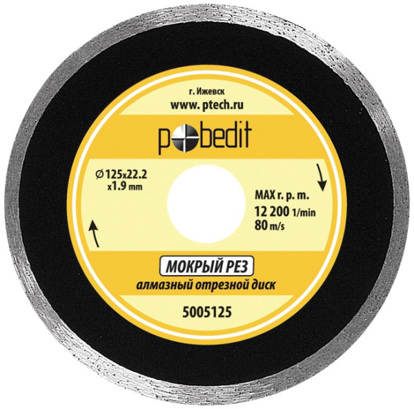 Высококач. термообработанная закал. сталь. Высокий ресурс реза обеспечивается алмазным порошком и оптимально подобранной связкой. Подходит для электроплиткорезов с водяным охлаждением.