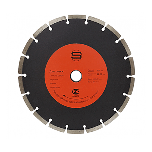 Диск алмазный 230 х 22.23 мм СТД-113 STRONG Segment (Econom) высокопроизводительный для сухого реза бетона, камня, железобетона, кирпича, клинкера, гранита, черепицы и пенобетона. Имеет полированную поверхность и сегментированную режущую кромку с алмазным напылением для точного и качественного реза. Сегменты на кромке обеспечивают дополнительное охлаждение, не давая перегреваться алмазному слою.