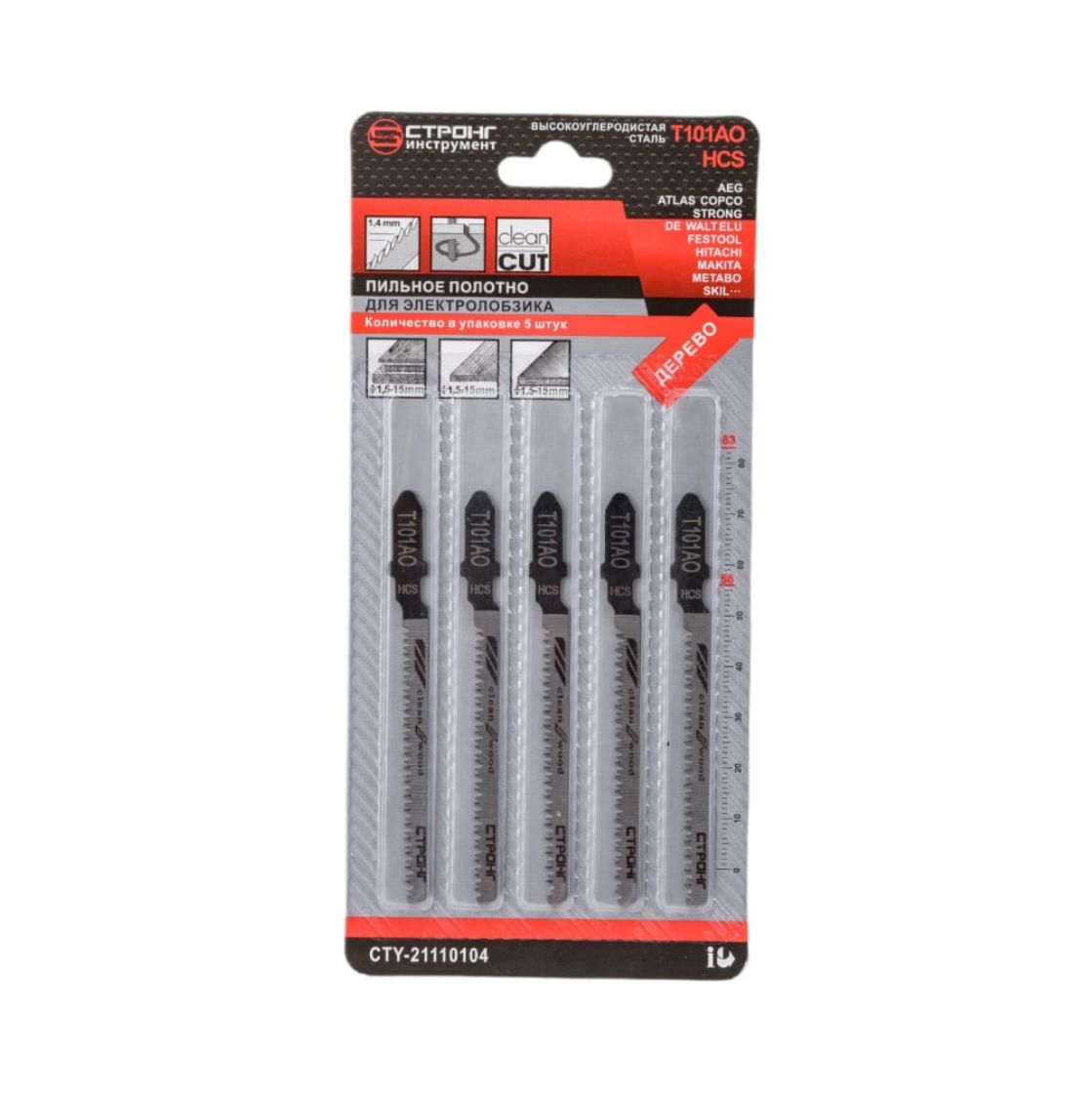Strong Набор полотен по дереву для электролобзика T101AO, СTУ-21110104, в упаковке 5 шт. Материал: сталь. Шаг зубьев: 1,4 мм. Крепление: Т-образное. Работа по основаниям: дерево, фанера, ДВП, ДСП, столярные плиты, пластмасса. Длина: 83 мм. Рабочая длина: 50 мм. Толщина разрезаемого материала: 1,5-15 мм. Размер зуба: мелкий. Тип зубьев: шлифованный зуб под свободным углом. Назначение: чистый криволинейный пропил в мягкой древесине, ДВП, ДСП и столярных плитах. Подходит для лобзиков фирм Strong, Makita, Bosch, Dewolt и других, имеющих Т- образное крепление хвостовика полотна. Strong Набор полотен по дереву для электролобзика T101AO, СTУ-21110104 - полотно с широкой спинкой и со шлифованным стальным зубом среднего размера, расположенным под свободным углом с небольшим шагом. Предназначено для чистого и аккуратного пиления древесины и ее производных, а также полимерных материалов. Пропил получается прямой и тонкий. Полотно такого типа обладает высокой прочностью, эффективностью и отличными эксплуатационными свойствами. Т-образный хвостовик позволяет использовать данный расходный материал с любыми электролобзиками, имеющими Т- образное крепление хвостовика полотна.