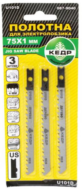 Полотна д/эл.лобзика по дер. 3 шт 75*1мм шаг 4мм U101D "КЕДР" 087-9040