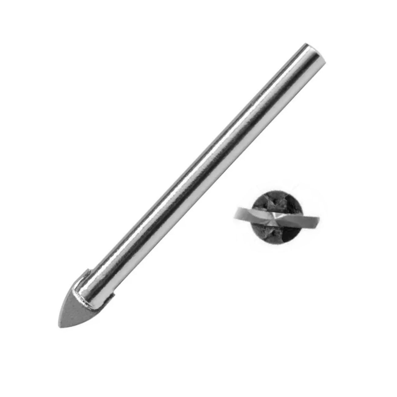 Инструментальная сталь, режущая пластина из победита. Сверло по кафелю, керамике, стеклу. Рекомендуется охлаждать водой.