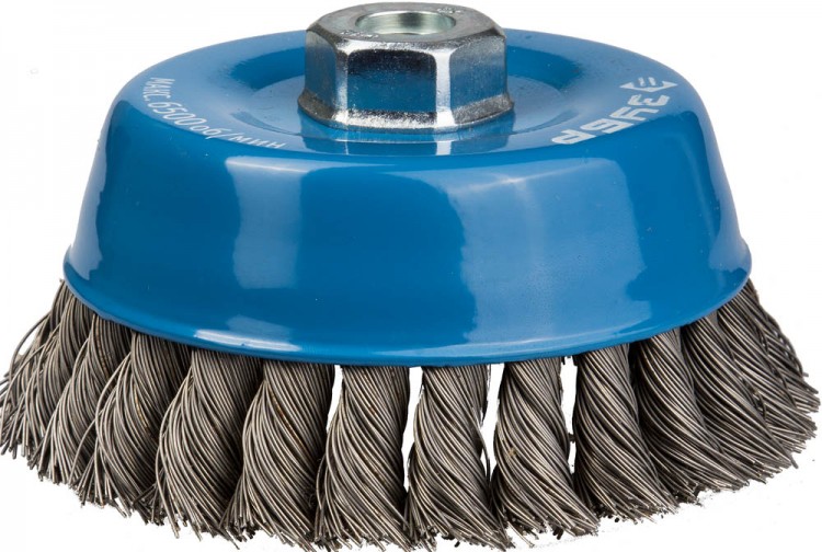 Щетка чашечная для УШМ, жгутированная стальная проволока 0,5мм,100мм/М14 ЗУБР (35128-100_z01)