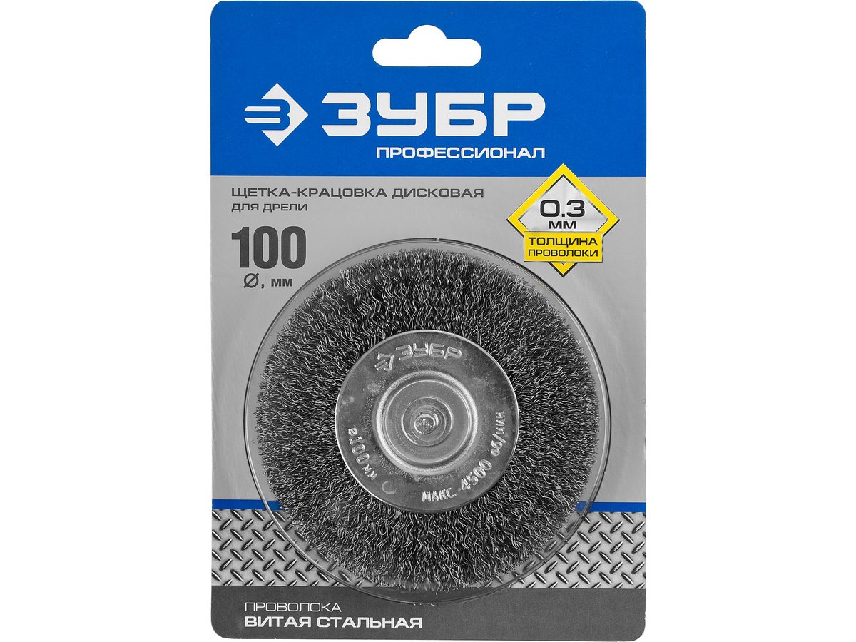 Щетка дисковая для дрели, витая стальная проволока 0,3мм, 100мм ЗУБР (35198-100_z02)