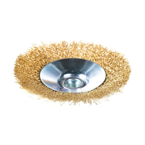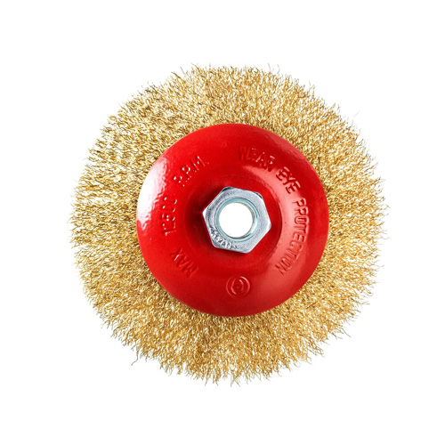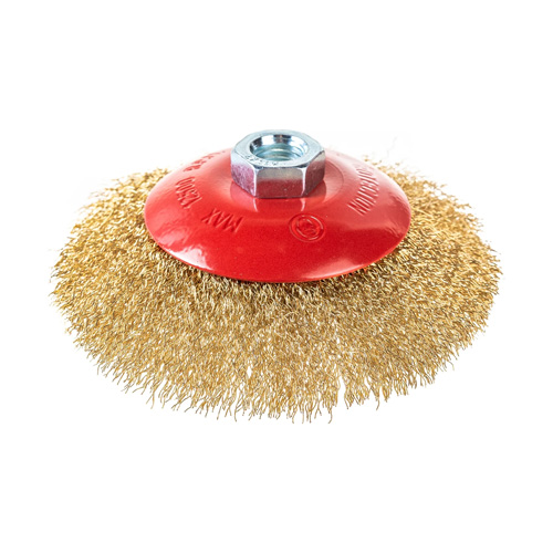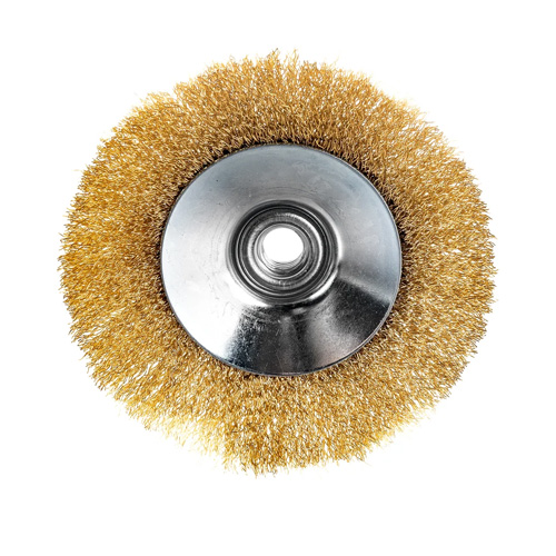 Щетка тарелка используется как насадка для угловых шлифовальных машин (болгарок). Применяется для щадящей очистки деревянных и металлических поверхностей, снятия ржавчины и зачистки сварных швов, удаления грязи, лакокрасочных покрытий. Материал проволоки: латунированная сталь; Форма проволоки: витая; Толщина проволоки: 0,3 мм; Тип щетки: тарелка; Диаметр: 125 мм; Посадочный диаметр: М14; Максимальная скорость: 12500 об/мин.