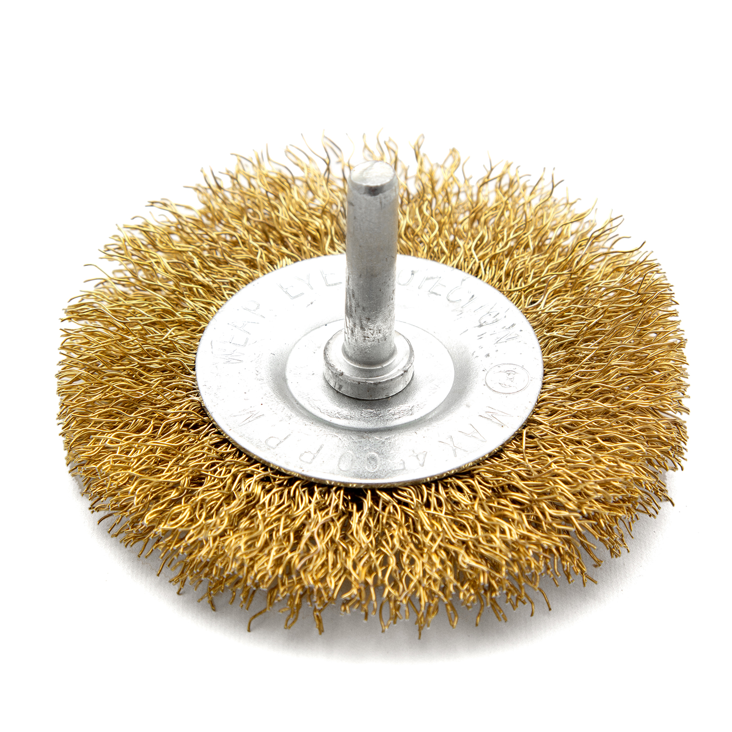 Проволока выполнена из латунированной стали диаметром 0,3 мм. Диаметр щетки составляет 100 мм. В изделии используется витая проволока, которая подходит для щадящей обработки поверхности.
