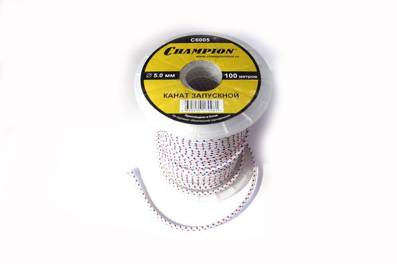 Канат запускной Champion 5.0 мм х 100 м - будучи намотанным на катушку бензопилы, осуществляет ее пуск. Для удобства канат можно укоротить на определенную длину.