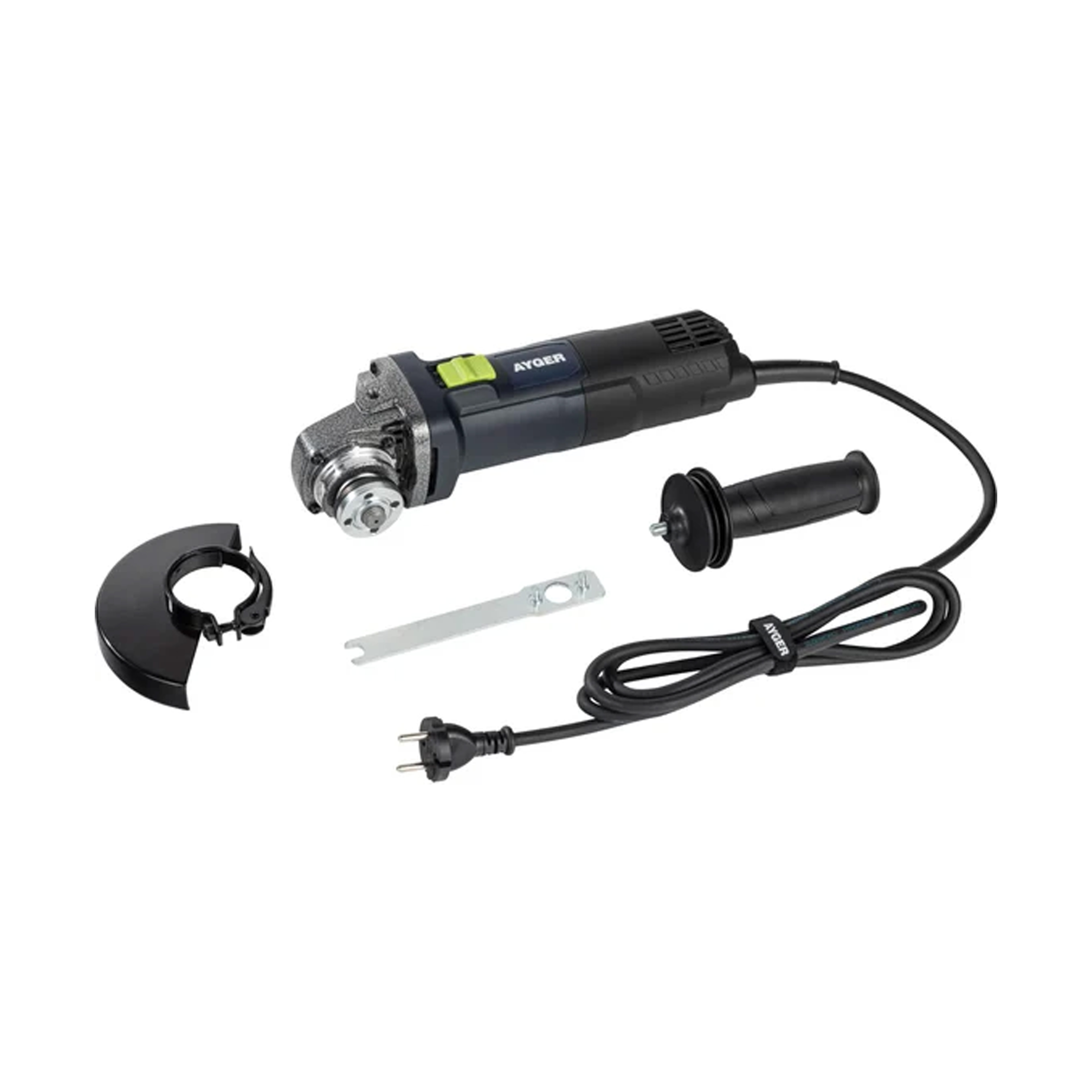 Машина углошлифовальная электрическая AYGER AG1800ES - является одним из наиболее популярных ручных электроинструментов, применяемых для работы с металлом. Ее мощность составляет 1800 Вт, а диаметр круга – 125 мм. Шлифмашина оснащена системой электронного регулирования оборотов, обеспечивающей вращение на частоте от 3000 до 11000 об/мин. Производитель акцентировал внимание на удобстве и безопасности использования, предусмотрев удобную рукоятку, защиту от случайного включения, блокировку шпинделя, регулируемый защитный кожух и длинный кабель питания длиной 2 метра. Вес угловой шлифовальной машины составляет 2.2 кг, а параметры электросети – 220 В, 50 Гц.
