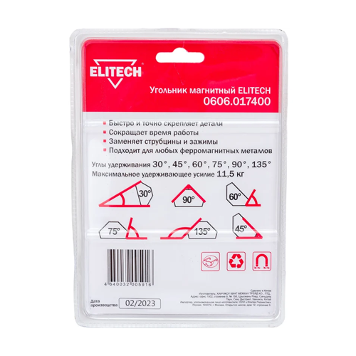 Уголок ELITECH 0606.017400 195309 представляет собой вспомогательный инструмент для сварщика. Модель позволяет отложить различные углы и контролировать процесс сварки.