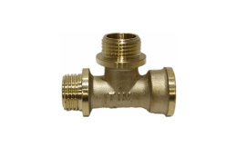 Латунный никелированный трехсторонний фитинг, равнопроходной. Резьба – цилиндрическая трубная. Внутренняя резьба совместимая также с наружной конической трубной резьбой.